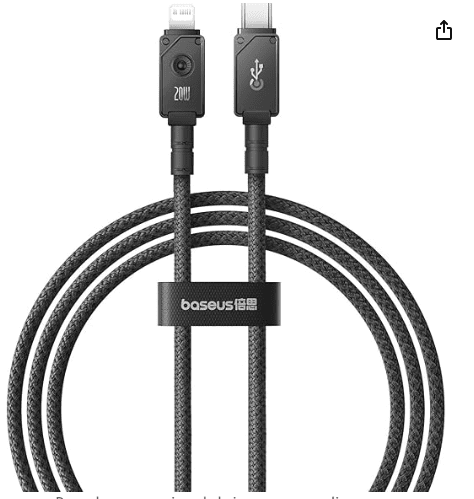 CABLE TIPO C A LIGHTNING USO RUDO 20W 1M NEGRO