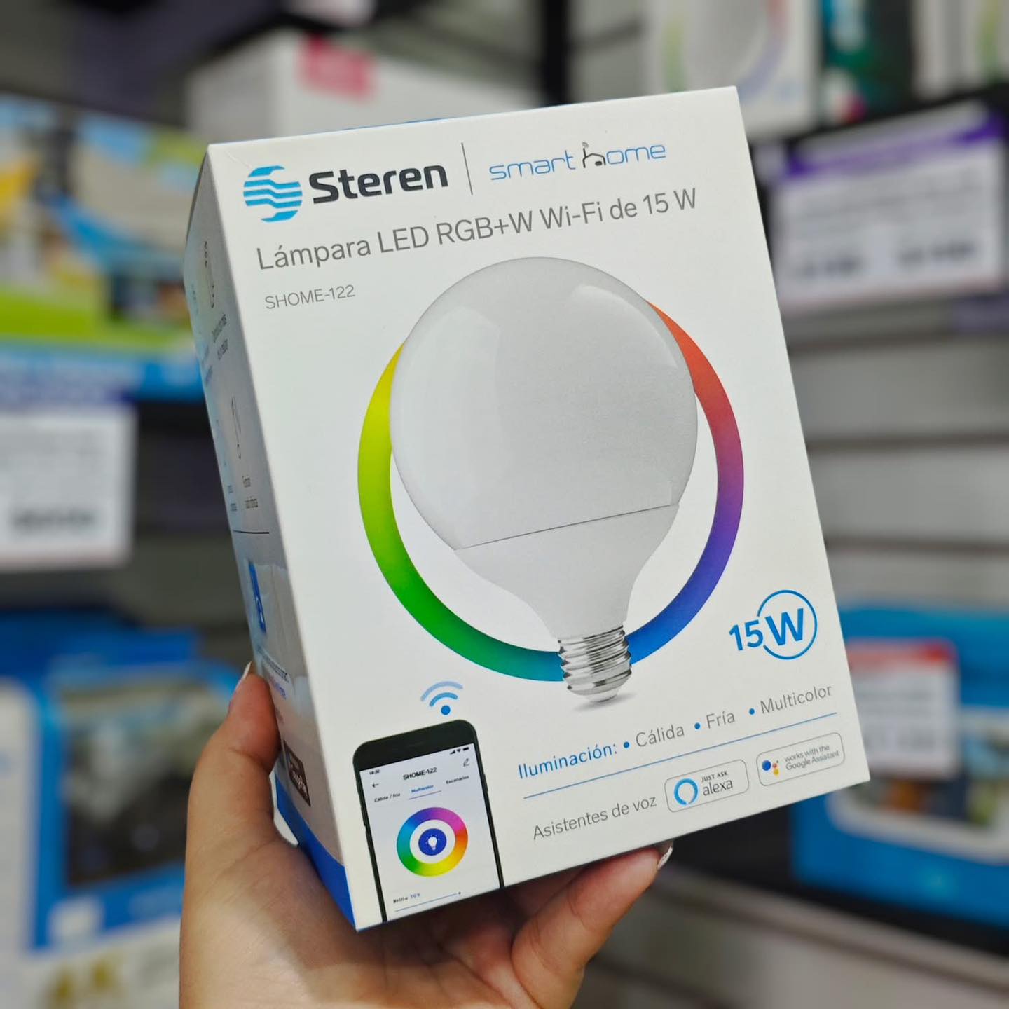 •Lámpara LED RGB+W Wi-Fi de 15 W de Steren modelo SHOME-122