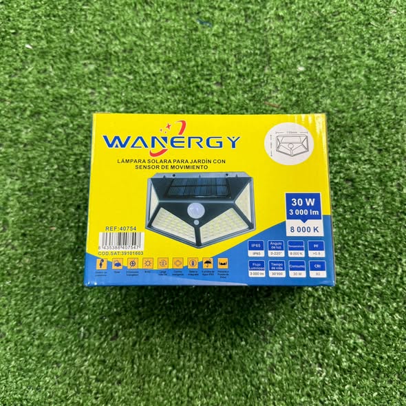 LAMPARA DE JARDIN 30W DOBLE CON PANEL SOLAR CON SENSOR WANERGY