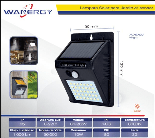 LAMPARA SOLAR CON SENSOR 10W 30D WANERGY