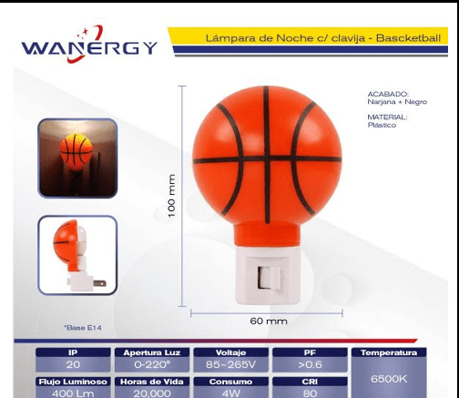 LUZ DE NOCHE C/CLAVIJA DE PELOTA DE BASQUETBOL WANERGY