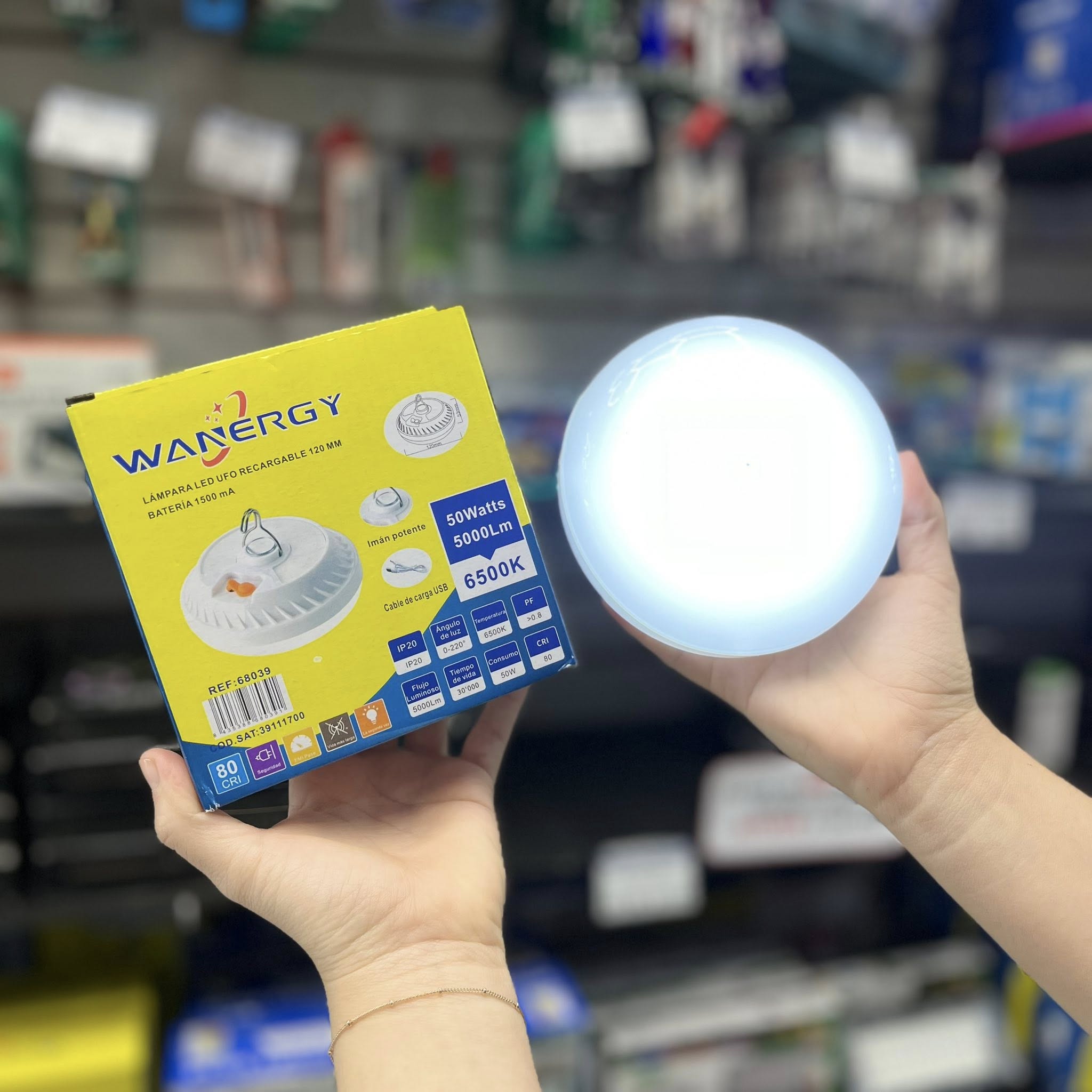 LAMPARA DE EMERGENCIA UFO RECARGABLE COLGANTE WANERGY