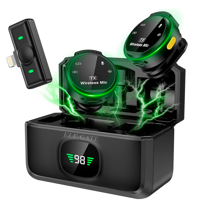 JUEGO DE MICROFONOS LAVALIER INALAMBRICOS CON RECEPTOR LIGHTNING