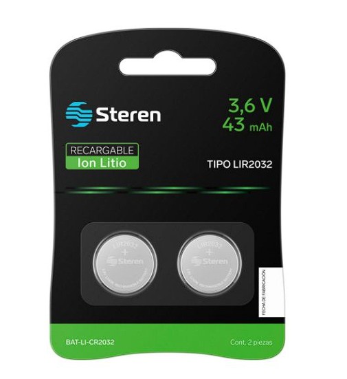 PILA PAR LITIO TIPO BOTON RECARGABLE CR2032 43MAH 3,6V STEREN LIR2032