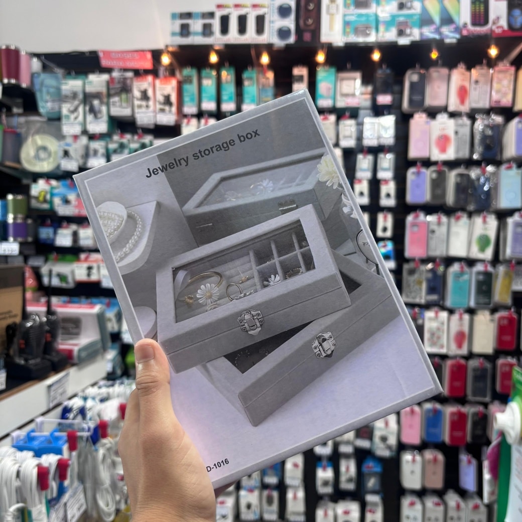 JOYERO VINIPIEL CON VENTANA TRANSPARENTE (MOD.HZH-705 )COLORES GRIS-BLANCO-ROSADO