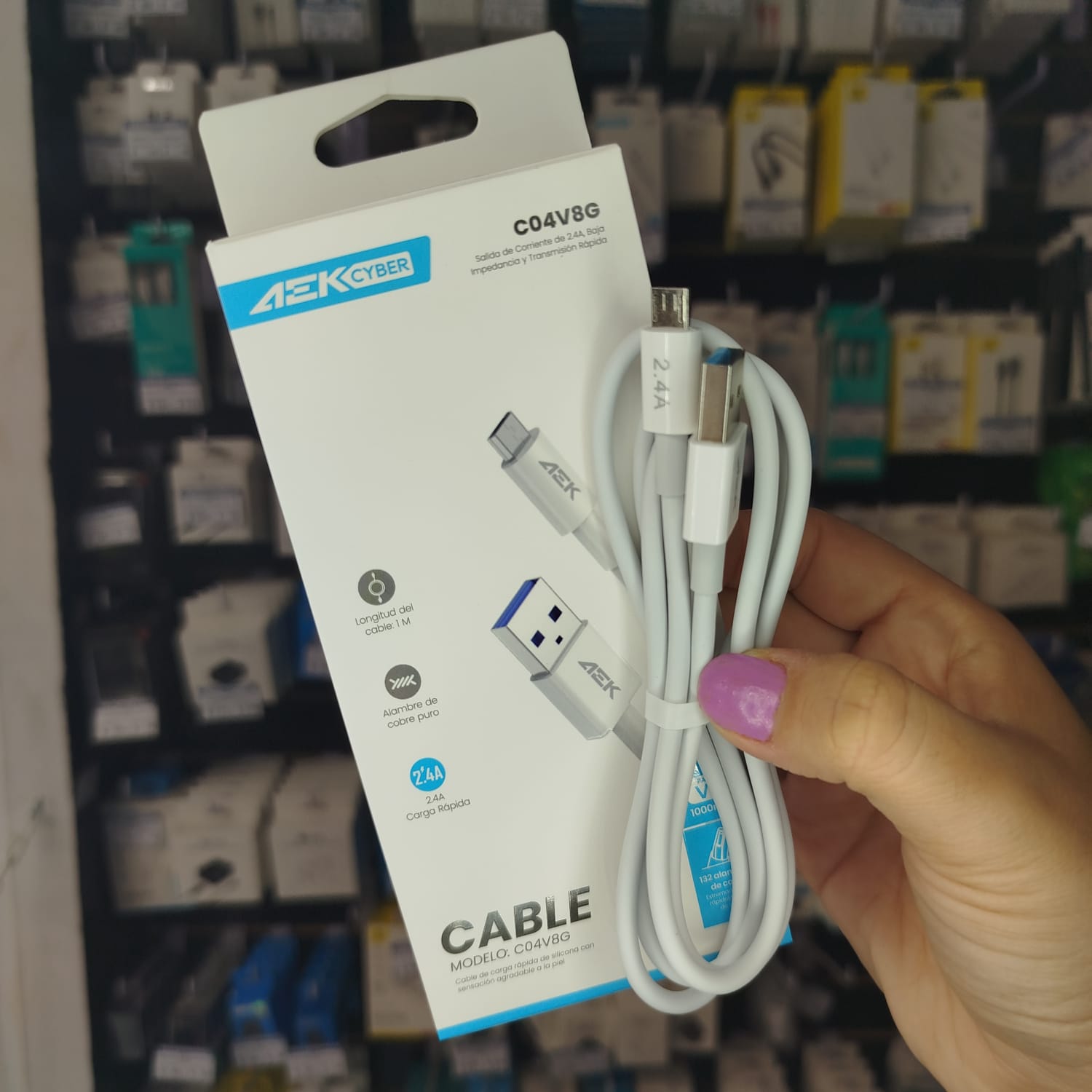 CABLE V8 1M 2.4A REFORZADO AEK C04V8