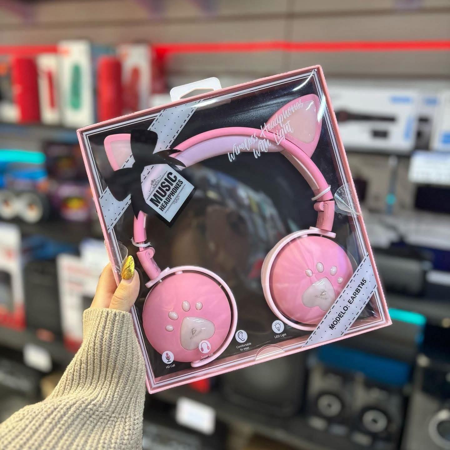 •Audífonos Bluetooth Inalámbricos De Diadema Con Orejas de Gato