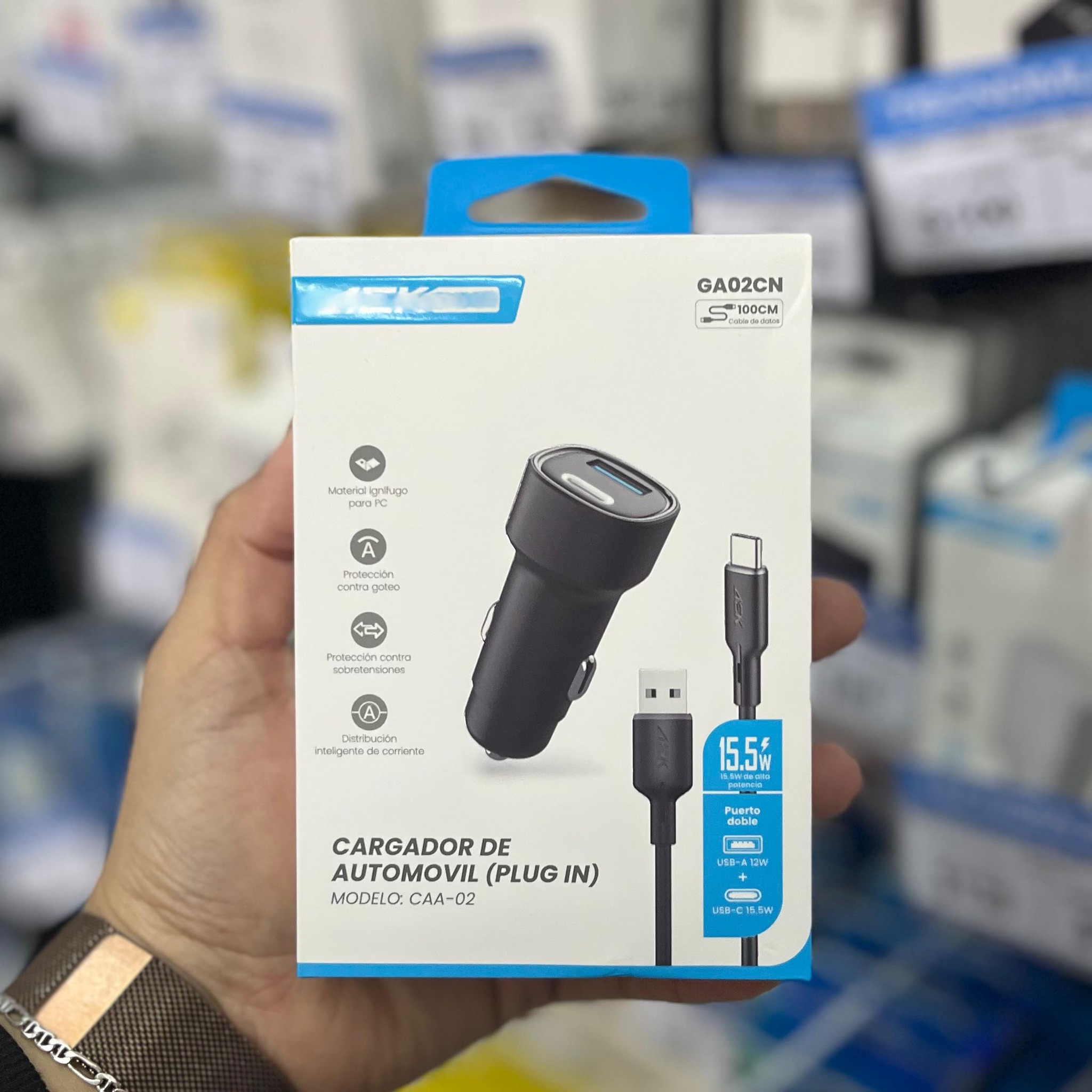 CARGADOR PARA AUTO CON CABLE USB TIPO C AEK 2.4A NEGRO GA02CN