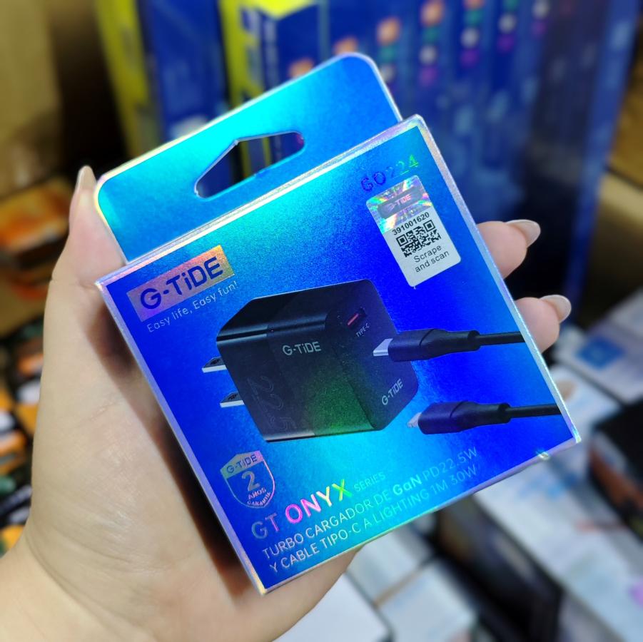 CUBO Y CABLE TIPO C A LIGHTING 22.5W GTIDE NEGRO BLANCO GO224