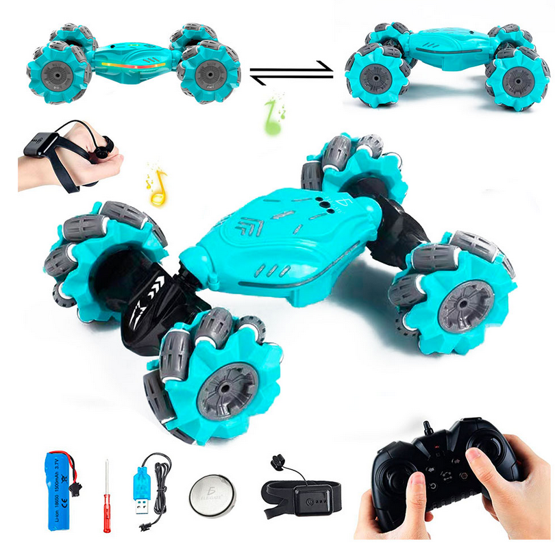 •Coche RC con acrobacias de torsión de nueva función con ruedas huecas antideslizantes luces LED de colores brillantes y reproducción de música que puede desviarse y girar 360