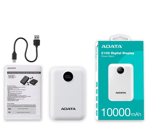 POWER BANK ADATA C10022 10000MAH ENTRADA USB TIPO C Y USB TIPO A BLANCO