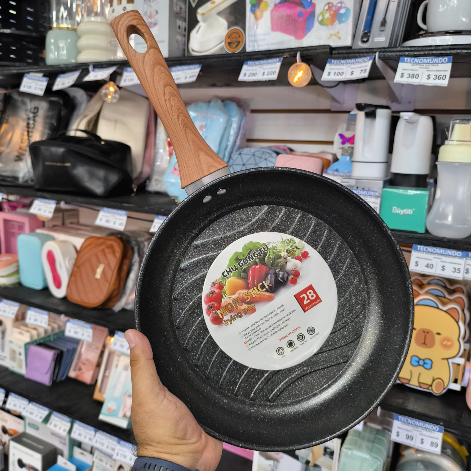 SARTEN 28CM DIAMETRO MANGO SUAVE DISEÑO MADERA