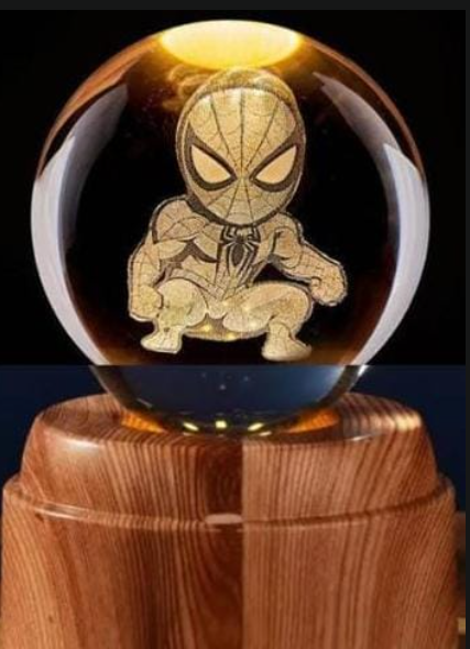 LAMPARA DE NOCHE 3D BOLA GIRATORIA D/CRISTAL SPIDERMAN SJ09612