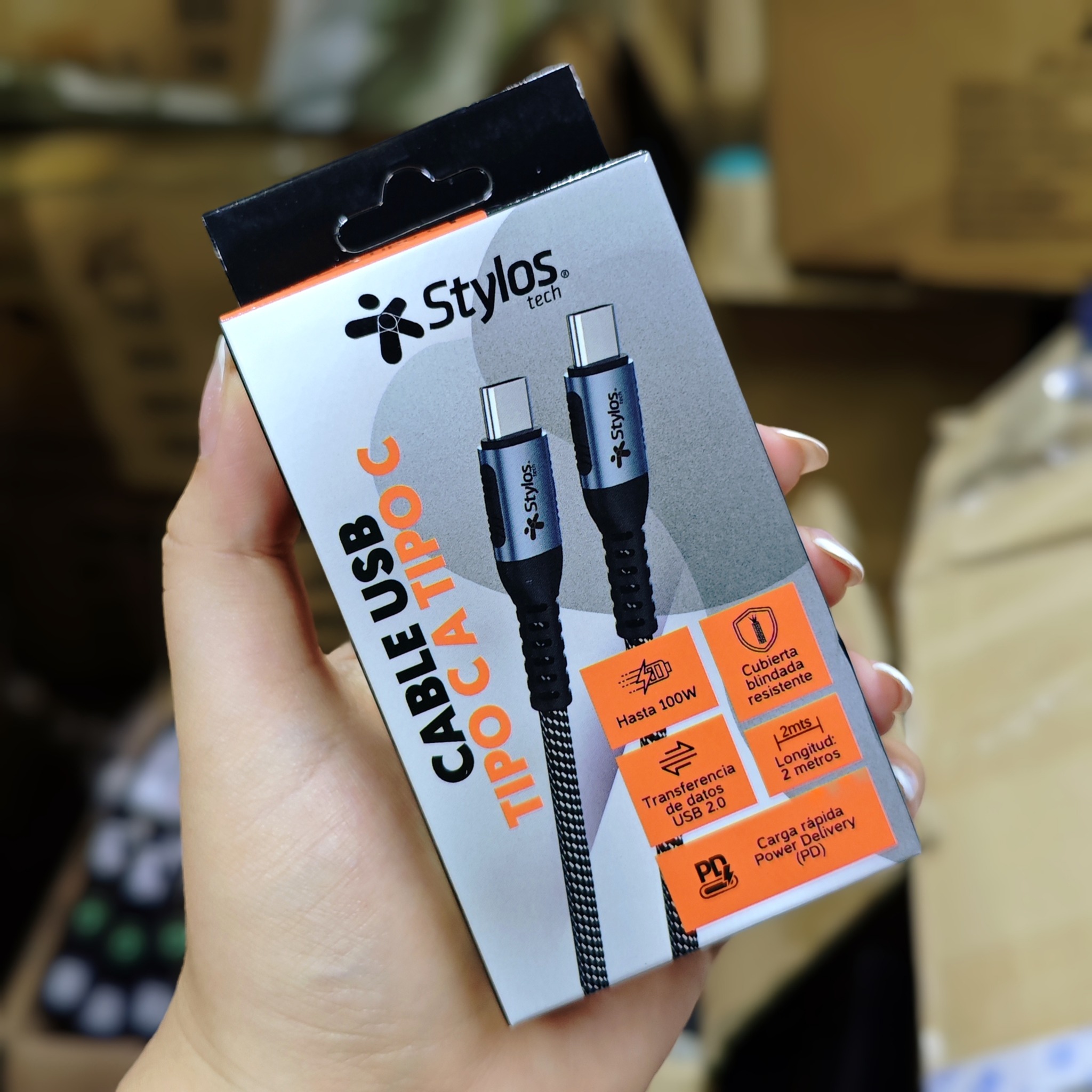 CABLE TIPO C A TIPO C STYLOS 100W 2 METROS NEGRO