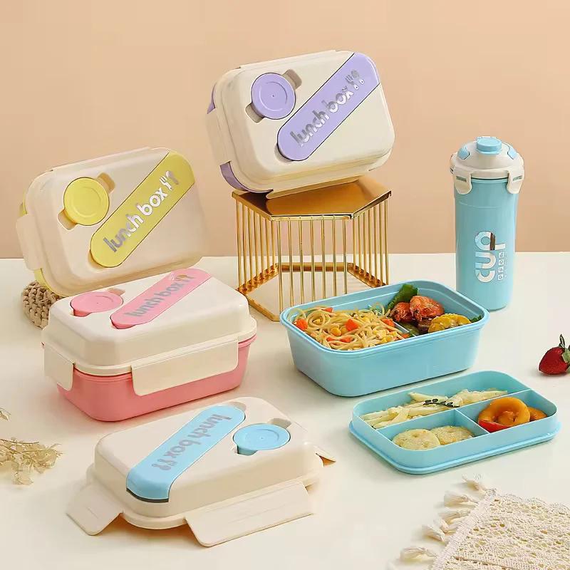•Elegante set de lonchera: almacenamiento de alimentos hermético con cuchara y botella (vaso)